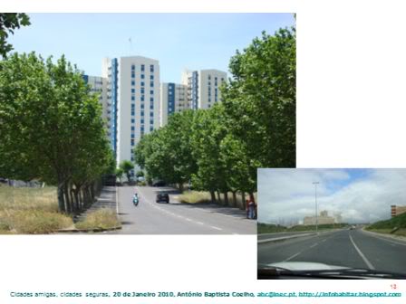 Este texto foi desenvolvido para basear uma intervenção realizada em 20 de Janeiro de 2010 no âmbito do Seminário intitulado "Comunidades Seguras em territórios urbanos", promovido pelo Instituto da Habitação e da Reabilitação Urbana e pela Iniciativa "Bairros Críticos", no Auditório do Instituto Superior de Ciências Policiais e Segurança Interna. Regista-se, ainda, que este texto está na continuidade de um outro maior incluído no capítulo intitulado "Habitar cidades amigas – projecto 3", integrado na Parte III, "Linhas/projectos de desenvolvimento para uma habitação humanizada", do estudo que realizei e que foi editado no Laboratório Nacional de Engenharia Civil, com o título "Habitação Humanizada" (LNEC, TPI N.º 46, 2007).