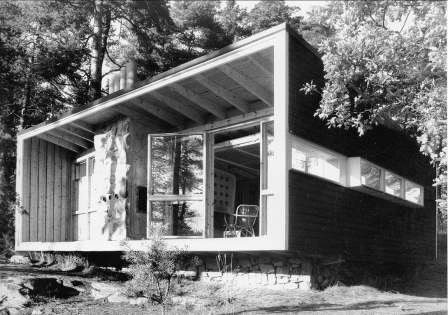"O volume prismático continha todo o programa: Uma sala de estar, transformável num estudio-dormitório e uma cozinha; ambos separados por uma enorme chaminé de alvenaria de pedra.